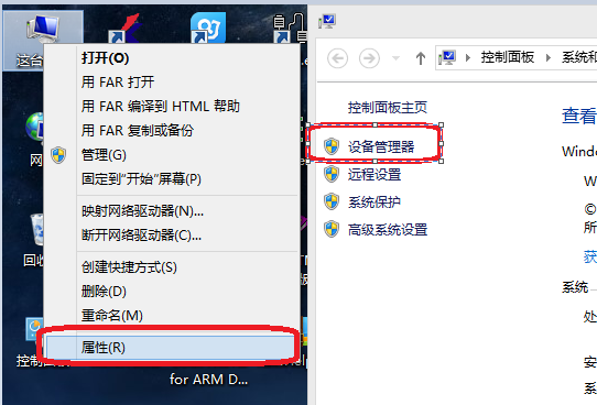 4、如果仍無法自動(dòng)安裝驅(qū)動(dòng),請(qǐng)打開桌面,這臺(tái)電腦,右鍵依次選擇屬性,找到設(shè)備管理器,如下圖: